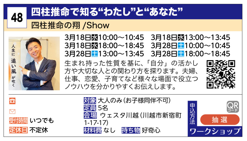 四柱推命講座の概要|川越まちゼミ