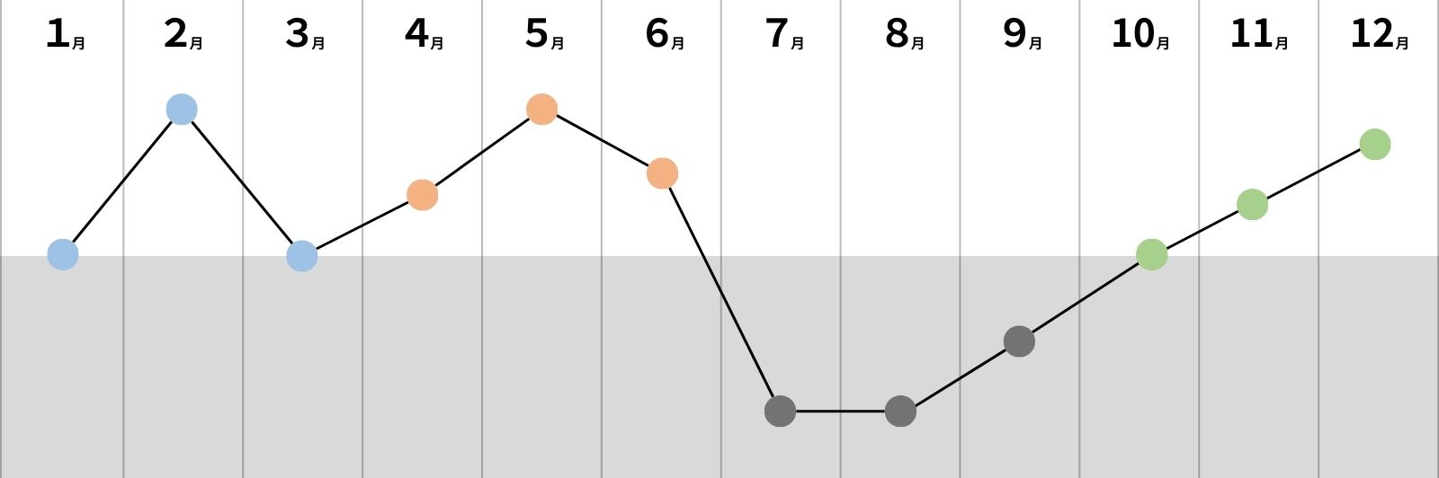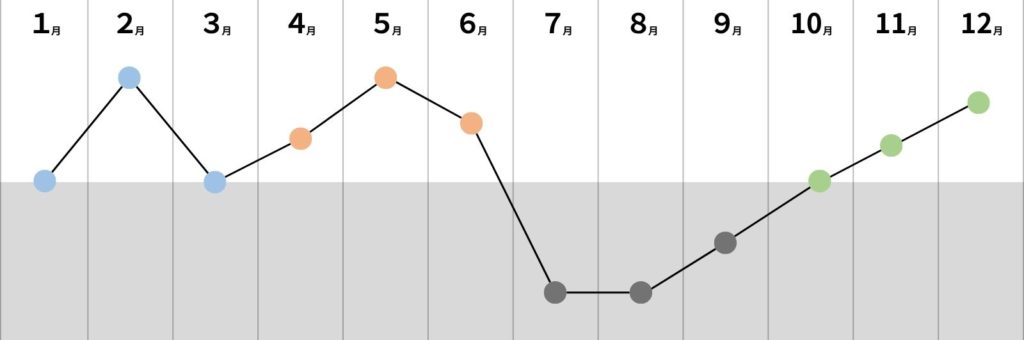 1年間の運気の傾向と過ごし方が分かったところで、月ごとの運気についてご紹介します。