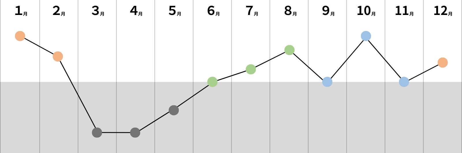 1年間の運気の傾向と過ごし方が分かったところで、月ごとの運気についてご紹介します。