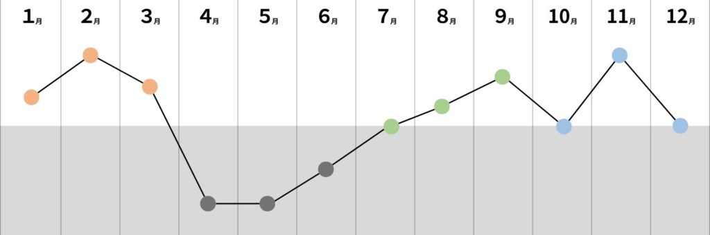 1年間の運気の傾向と過ごし方が分かったところで、月ごとの運気についてご紹介します。